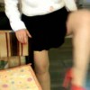 Descrizione: Camminata per mostrare gambe e coscie di donna matura.