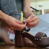 Descrizione: Schiaccio un pupazzetto che fa le veci del mio schiavo schiacciato sotto le suole dei miei sandali